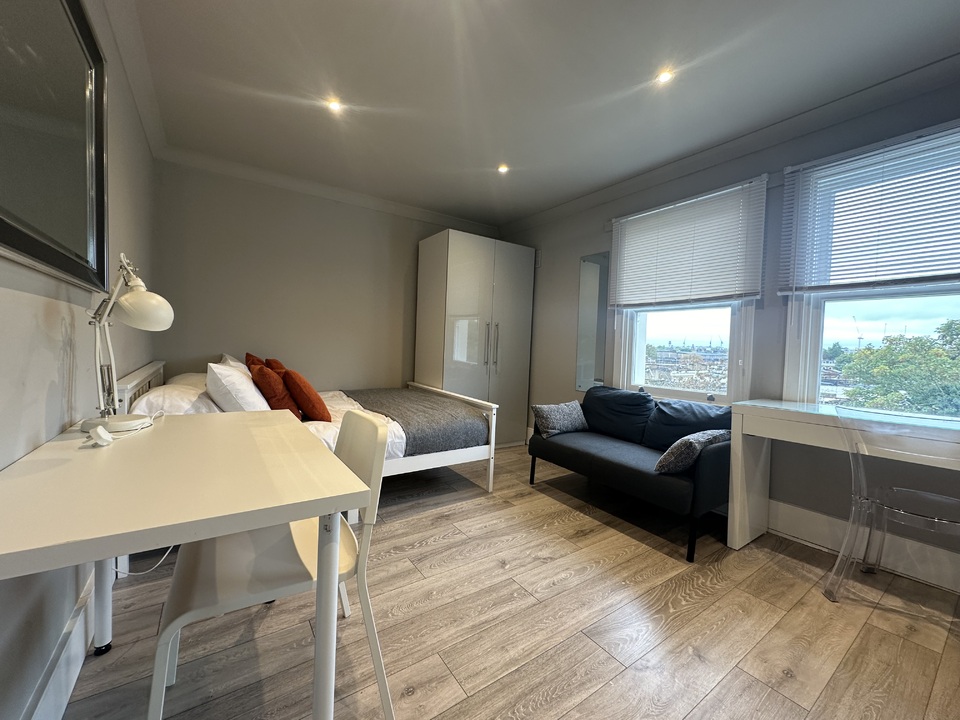 This newly refurbished large studio apartment is within a fantastic Victorian period conversion and is self contained and features its own new kitchen, shower room and living area.