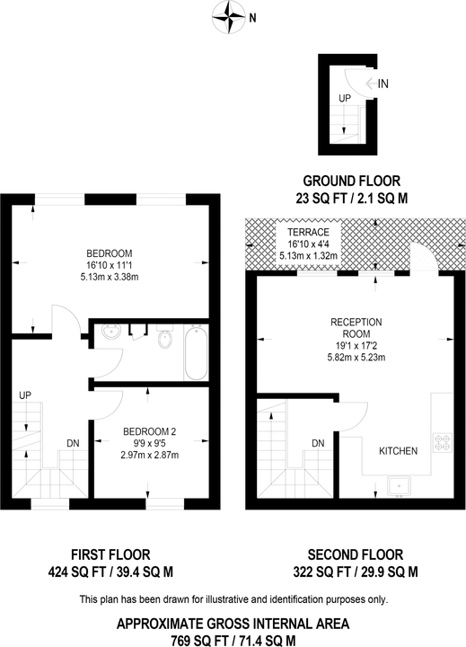 - 770 sq feet / 72 sq mtrs approx