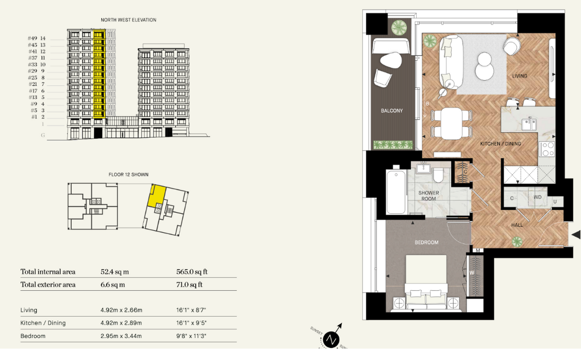 565 Sq Ft | One Bedroom, One Bathroom Apartment | 11th Floor | Dual Aspect Facing North West & South West | 72 Sq Ft Private Balcony | 24-Hour Concierge | Resident Lounge & Terrace | State-of-the-Art Gym | Wellness Spa with Sauna & Steam Room | Heated Indoor Pool | Three Exclusive Cinema Rooms | Comfort Cooling & Underfloor Heating | Morrisons Supermarket Nearby | 6 Minutes to Chalk Farm Station | Approximate Completion: Oct-Dec 2025